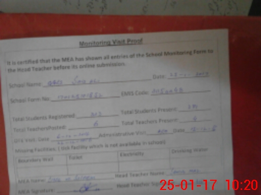 | Certified that this School was Inspected by the Undersigned MEA/DMO Today and the Information Stated Above is as Per Record. | |||||