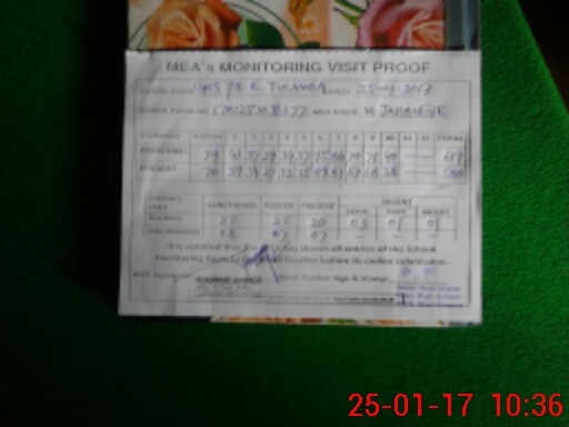 | Remarks (Use Separate Page if Required): FAKHAR ABBAS SESE MATH FOUND ABSENT FROM DUTY BOGUS ATTENDANCE ON ATTENDANCE REGISTER BY ANY ONE TEACHER PHYSICALLY NOT PRESENT IN THE SCHOOL ON CHECKING LAST DIARY SNO 30 DATED 25 JAN 2017 LAST ORDER BOOK SNO 17 DATED 25 JAN 2017 | |||||