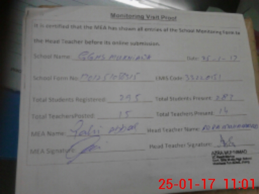 | Attendance Register | Head Teacher | MEA with School | Visit Proof |