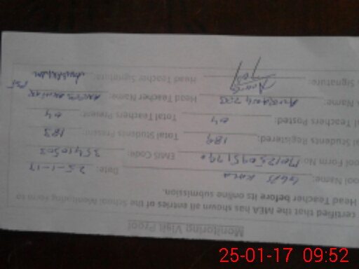 | Certified that this School was Inspected by the Undersigned MEA/DMO Today and the Information Stated Above is as Per Record. | |||||