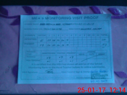 | Certified that this School was Inspected by the Undersigned MEA/DMO Today and the Information Stated Above is as Per Record. | |||||