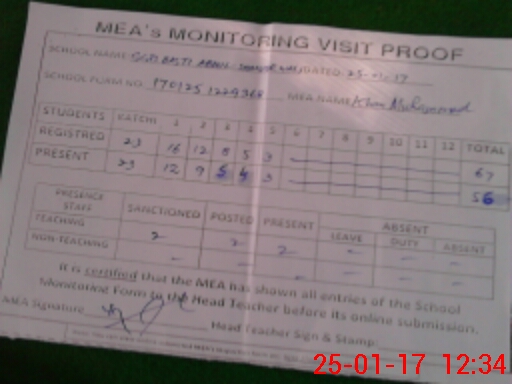 | Attendance Register | Head Teacher | MEA with School | Visit Proof |