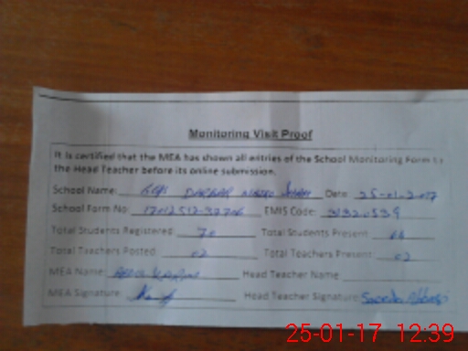 | Attendance Register | Head Teacher | MEA with School | Visit Proof |