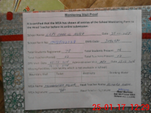 | Attendance Register | Head Teacher | MEA with School | Visit Proof |