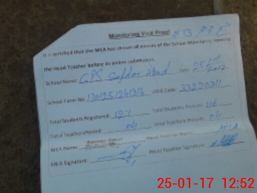 | Attendance Register | Head Teacher | MEA with School | Visit Proof |