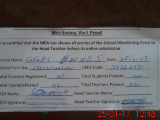 | Certified that this School was Inspected by the Undersigned MEA/DMO Today and the Information Stated Above is as Per Record. | |||||