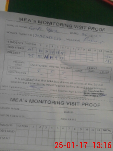 | Attendance Register | Head Teacher | MEA with School | Visit Proof |