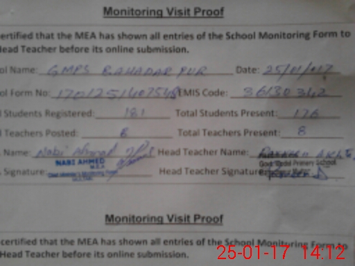 | EMIS Code: 36130342 | Name of School: GMPS BAHADAR PUR NEAR BASTI NAU | |||