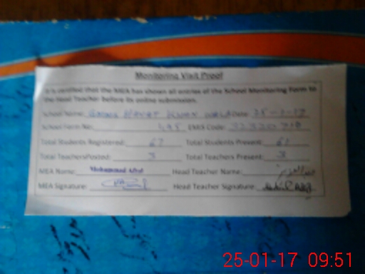 | Attendance Register | Head Teacher | MEA with School | Visit Proof |