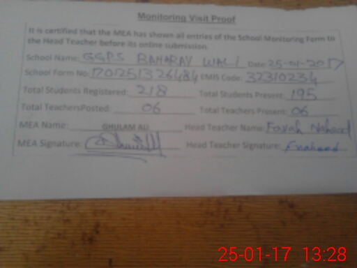 | EMIS Code: 32310234 | Name of School: GGPS BAHARAY WALA | |||