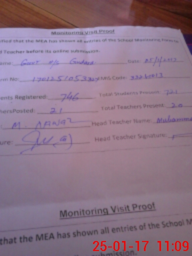 | Name: MAF**** JA**** Designation: (School Headmaster's/Headmistress's) HEADMASTER Phone/Cell Number: 03**** |