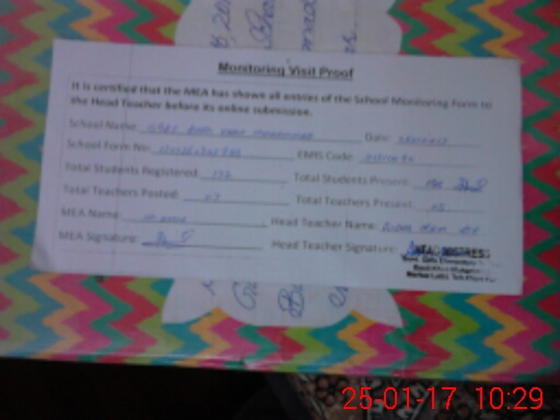 | Attendance Register | Head Teacher | MEA with School | Visit Proof |