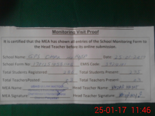 | EMIS Code: 39210101 | Name of School: GPS 14-SP P.O PAKPATTAN | |||