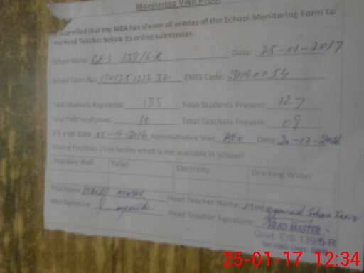 | EMIS Code: 31140054 | Name of School: GES CHAK NO. 139/6-R | |||