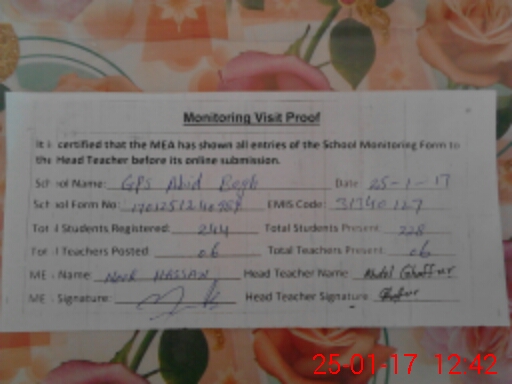 | EMIS Code: 31340127 | Name of School: GPS ABID BAGH | |||