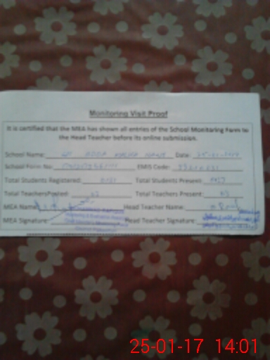 | Attendance Register | Head Teacher | MEA with School | Visit Proof |