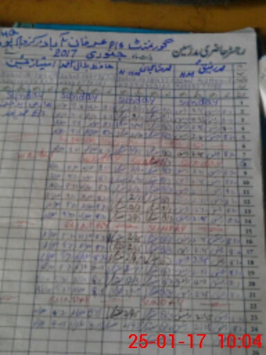 | CNIC | Full Name | Designation | R/C | Absence During Last Calender Month |
