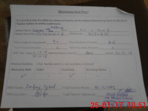 | Certified that this School was Inspected by the Undersigned MEA/DMO Today and the Information Stated Above is as Per Record. | |||||