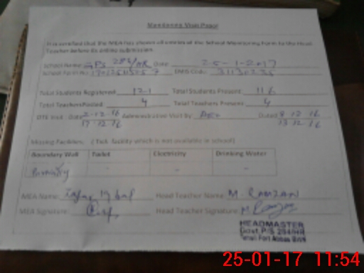| Attendance Register | Head Teacher | MEA with School | Visit Proof |