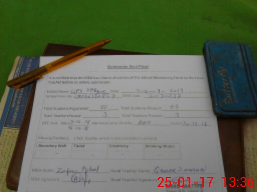 | Monitoring Date: 25-01-2017 | Start Time: 25-01-2017 01:15 PM | End Time: 25-01-2017 01:50 PM | Name of MEA: Za**** Iq**** BN**** | |