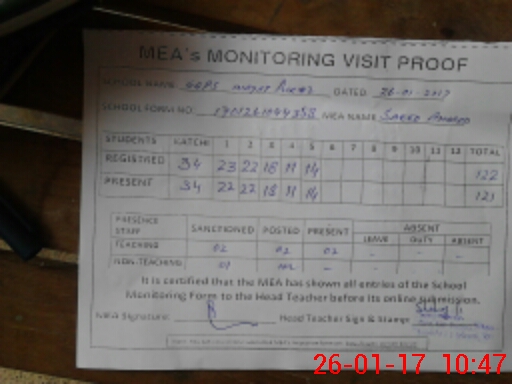 | Attendance Register | Head Teacher | MEA with School | Visit Proof |