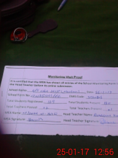 | Attendance Register | Head Teacher | MEA with School | Visit Proof |