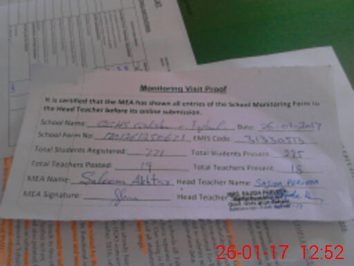 | Certified that this School was Inspected by the Undersigned MEA/DMO Today and the Information Stated Above is as Per Record. | |||||