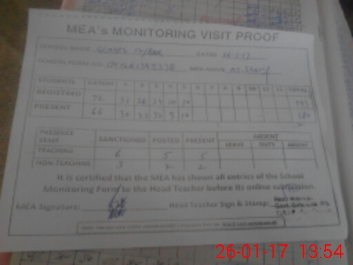 | Attendance Register | Head Teacher | MEA with School | Visit Proof |