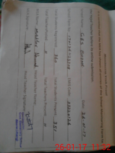| Attendance Register | Head Teacher | MEA with School | Visit Proof |