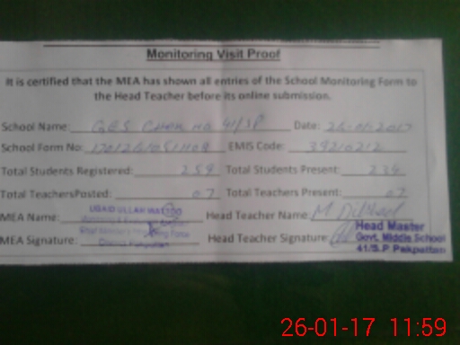 | Certified that this School was Inspected by the Undersigned MEA/DMO Today and the Information Stated Above is as Per Record. | |||||