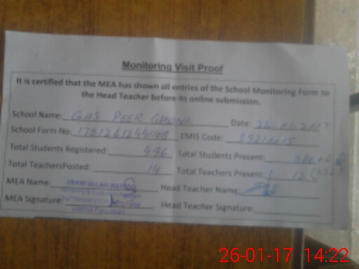 | EMIS Code: 39210015 | Name of School: GHS PEER GHANI | |||