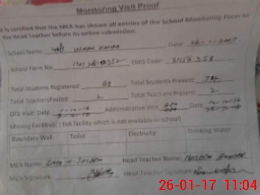 | EMIS Code: 31150358 | Name of School: GGPS USMAN KHARA | |||