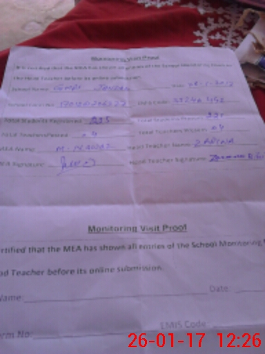 | Attendance Register | Head Teacher | MEA with School | Visit Proof |