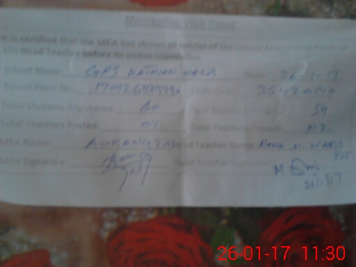 | Attendance Register | Head Teacher | MEA with School | Visit Proof |