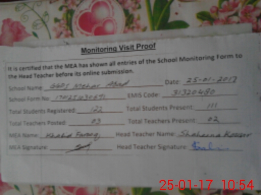 | Certified that this School was Inspected by the Undersigned MEA/DMO Today and the Information Stated Above is as Per Record. | |||||