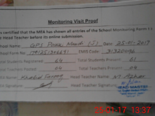 | EMIS Code: 31320096 | Name of School: GPS PAKI MANDI JADEED | |||