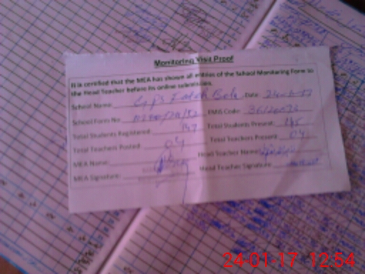 | Attendance Register | Head Teacher | MEA with School | Visit Proof |