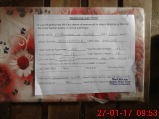 | Attendance Register | Head Teacher | MEA with School | Visit Proof |