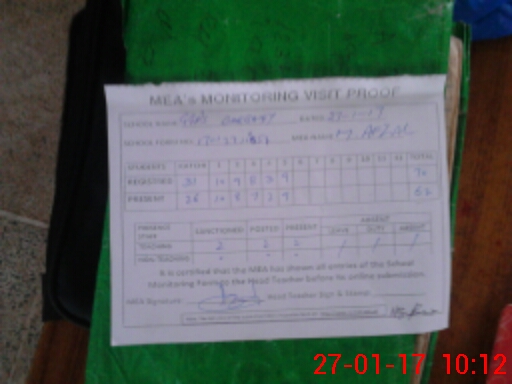 | Attendance Register | Head Teacher | MEA with School | Visit Proof |
