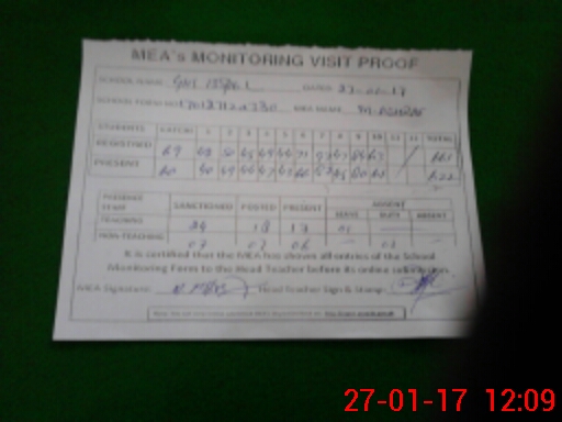 | Attendance Register | Head Teacher | MEA with School | Visit Proof |