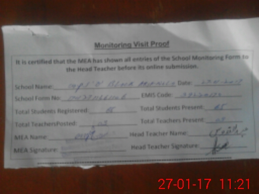 | Attendance Register | Head Teacher | MEA with School | Visit Proof |