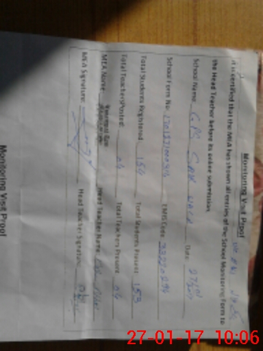 | School Visited by School Health & Nutrition Supervisor (No. of Visits) | 1 | Name1: | TASNEEM FATIMA | Name2: | NIL |