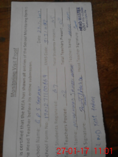 | Attendance Register | Head Teacher | MEA with School | Visit Proof |