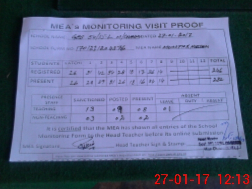 | Attendance Register | Head Teacher | MEA with School | Visit Proof |