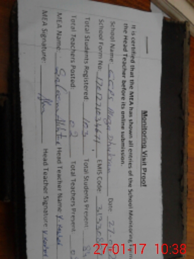 | Attendance Register | Head Teacher | MEA with School | Visit Proof |