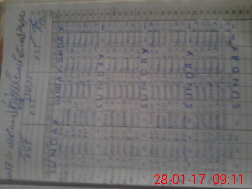 | CNIC | Full Name | Designation | R/C | Absence During Last Calender Month |