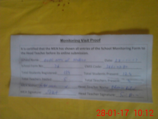| Attendance Register | Head Teacher | MEA with School | Visit Proof |