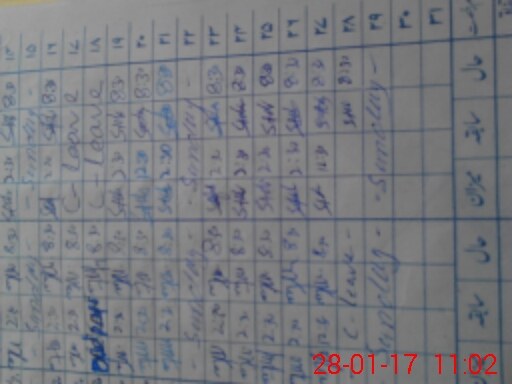 | CNIC | Full Name | Designation | R/C | Absence During Last Calender Month |