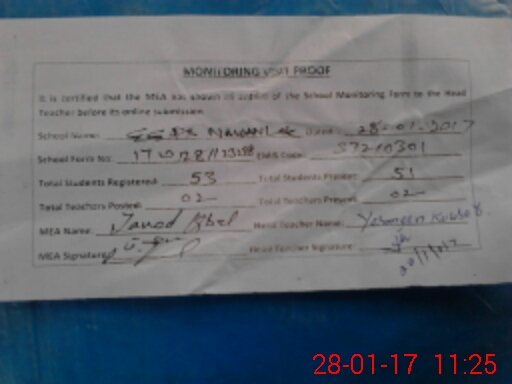 | Attendance Register | Head Teacher | MEA with School | Visit Proof |