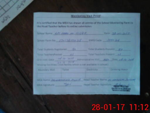 | Certified that this School was Inspected by the Undersigned MEA/DMO Today and the Information Stated Above is as Per Record. | |||||
